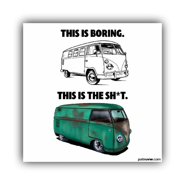 In this design there is a slammed patina Volkswagen bus barndoor, shoutout to Morgan Hall who owns this insane patina 1953 bus that looks nuts.